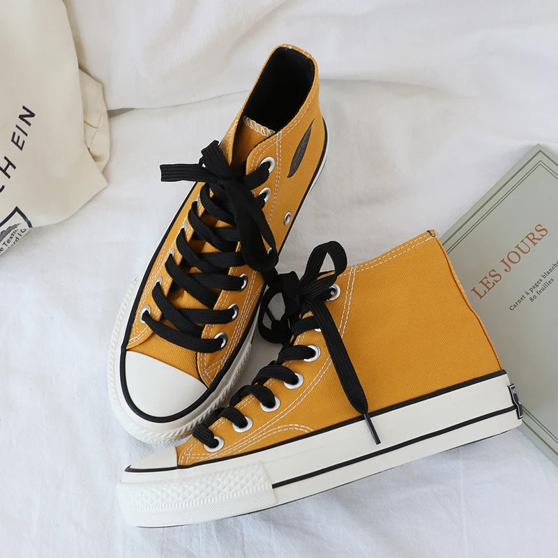Best Quality Classic high-top solid causal sneakers Shoes woman Black Comfortable Simple canvas shoes tenis femi