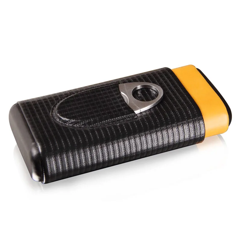 Classical Top grade Pure cowhide Black Pine wood Cigar Case Holder 3 Tube with Free Cigar cutter Re
