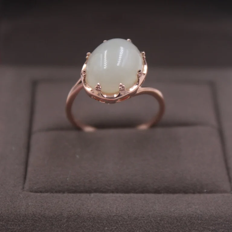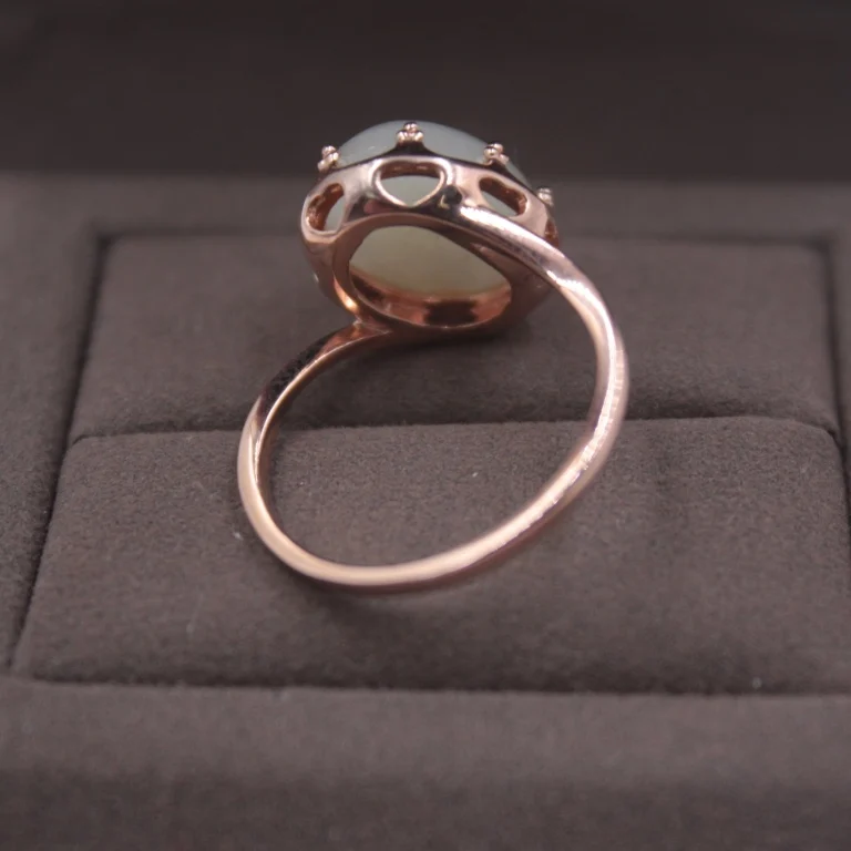 Pure S925 Silver &Hetian Jade Ring Rose Gold Color Flower Lace Woman's Ring US 5-9 Elegant Fashion